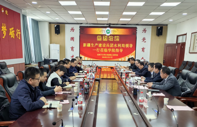 新疆生产建设兵团水利局余仲副局长一行先后参观了现代节水灌溉兵团重点实验室、寒旱区生态水利工程兵团重点实验室、现代灌区模拟实验室、新疆兵团高烈度寒区建筑抗震节能技术工程实验室等相关实验室。座谈会上,叶含春副校长代表学校向余仲副局长一行的到来表示热烈欢迎,并对兵团水利局在学院科学研究和人才培养等方面给予的支持表示感谢。王振华院长详细介绍了学院近年来在学科专业、师资队伍、科学研究和社会服务等方面的建设成效和发展规划。余仲副局长对兵团水利局基本情况进行了介绍,肯定了学院在兵团水利行业所做出的贡献,对学院在人才培养等方面给予的大力支持表示感谢。双方就智慧水利、人才培养、科学项目和科研平台搭建等方面进行了深入交流。