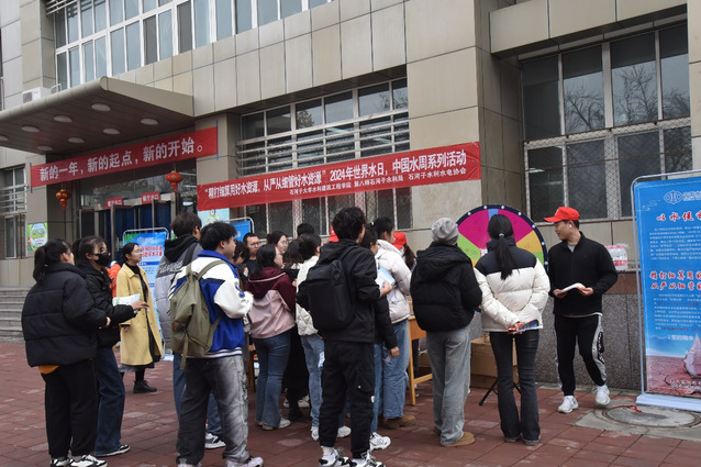 华语av 学生社团“水蓝社”成员在学院团委和水利水电工程系、给排水科学与工程系的统一组织下,分别在华语av 中区会泽食府、北区方圆餐厅、北苑新区明德食府前设置了2024年“世界水日”和“中国水周”水资源节约保护宣传展台,通过展示科普宣传海报、发放宣传手册、开展科普宣讲和有奖互动问答等形式向广大师生宣传科普“世界水日”和“中国水周”的活动目的意义,号召广大师生关注水资源现状,倡导师生提升节水意识。各校区师生们积极参与,活动现场气氛热烈。