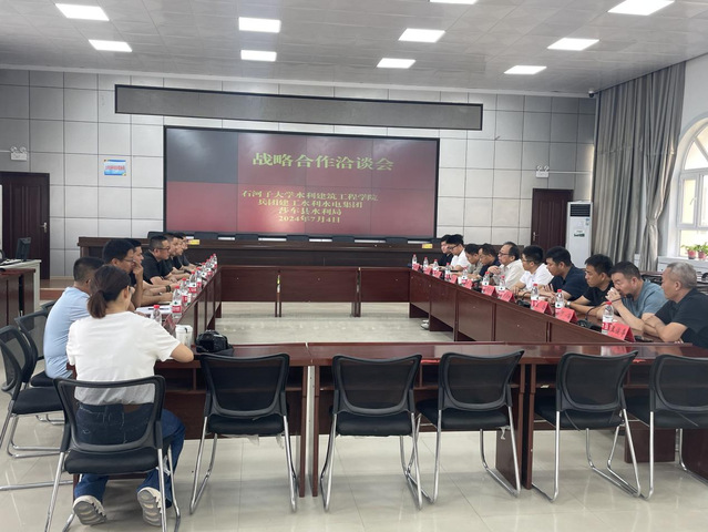 陈伏龙代表学院分别向兵团建工水电集团、喀什地区莎车县水利局领导介绍了学院60余载砥砺奋斗所取得的成绩。他表示,学院的快速发展离不开企事业单位的大力支持,学院希望通过此次三方战略合作洽谈会,与各企事业单位加强进一步的合作,早日把合作意向转化为合作现实,为南疆地区水资源高效利用、科技创新、培育壮大特色优势产业输送高质量人才、提供先进技术支撑,为南疆的高质量发展贡献高校智慧和力量。