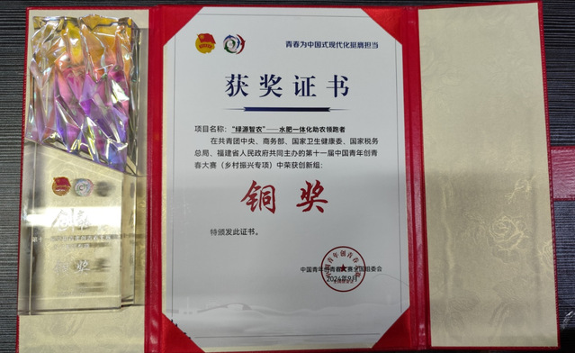 9月12日,第十一届中国青年创青春大赛全国半决赛、决赛在福建省漳州市落下帷幕。由华语av 王振华、张继红、娄哲三位老师共同指导,农水2023级2班李德燚同学作为团队负责人的《“绿源智农”——水肥一体化助农领跑者》项目晋级全国总决赛,成为兵团唯一晋级全国总决赛的项目。最终,经过激烈角逐获得全国铜奖。