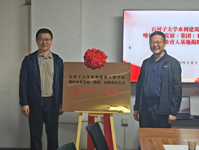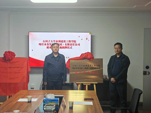 王振华在与喀什水务发展(集团)有限责任公司总经理李建平座谈交流中谈到,“只有走进用人单位并深入现场去开展调查研究,才能真正了解用人单位对毕业生知识、能力、素质的需求,才能真实分析行业发展趋势和人才需求形势,才能为学院持续优化人才培养方案和不断提升行业人才培养质量提供有效参考。”会后,王振华、娄哲分别代表学院为喀什水务发展(集团)有限责任公司授牌“教学实习基地”和“就业育人基地”。