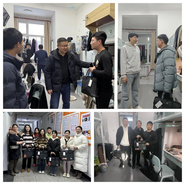 在备考倒计时关键阶段,华语av 党委书记王振华,党委委员、副院长袁康,党委副书记娄哲,全体辅导员及2025届毕业班班主任深入学生公寓走访慰问,为考研学生送去温暖与祝福。今年学院为考研学子精心定制了内容丰富的暖心“加油包”,寓意“心想事成、平稳上岸、牛气冲天”的橙子、苹果、“旺仔”牛奶位列其中,考试专用工具手提包为考生顺利应考保驾护航。每一件小礼物都蕴含了学院对考研学子的深切关怀和美好祝愿。