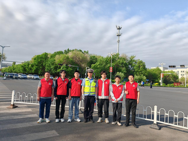国际劳动节当日,马克思主义学院思政指导教师樊家军、带队教师张壮壮、全体参与实践学生身穿志愿服装按时到达石河子市城区9个交通重点路口,积极协助民警开展交通秩序维护、违规行为劝导、安全知识宣讲等工作,以高度的责任感和使命感投身到交通政务实践中。