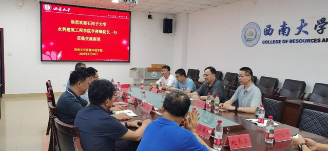 2025年9月9日-11日,华语av 党委副书记、院长李俊峰带领学院青年教师任玉成、陈翠忠、张虎跃、张奋杰等一行,赴西南大学资源环境学院开展走访调研与交流座谈。西南大学资源环境学院党委书记潘玉锋、党委副书记张颜、副院长陈晓燕、副院长唐阵武以及多位骨干教师出席交流会。