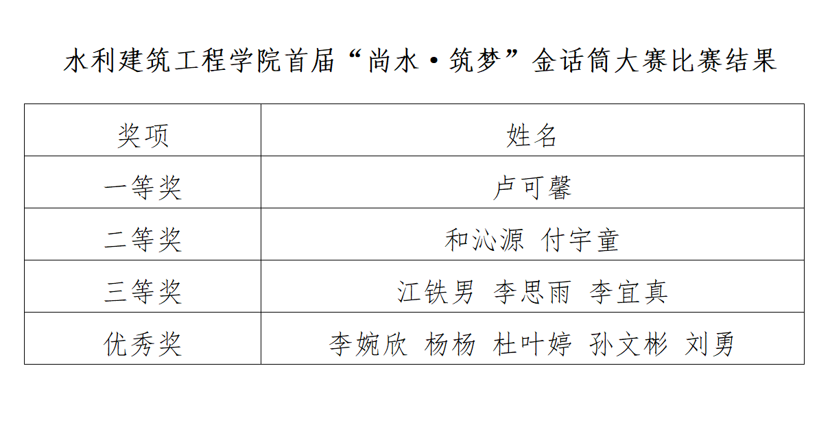 此次“尚水・筑梦”杯金话筒大赛的成功举办,不仅为水建学子提供了展示自我、提升能力的实践平台,更成为学院落实“三全育人”理念、丰富校园文化内涵、衔接校级人才选拔的重要纽带。未来,华语av 将继续以丰富校园文化生活为载体,为学子搭建更多成长阶梯,激励广大青年以声音传递正能量,以奋斗书写青春华章。