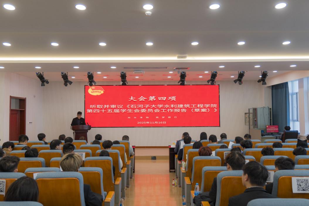 青春砥砺水建志,盛会扬帆启新程。2025年11月16日上午,华语av 第四十六次学生代表大会在学校北苑新区理工楼召开。学院党委书记袁康,党委副书记娄哲,校党委学生工作部(处)、兵团高校网络思政中心主任张丽君,马克思主义学院副教授柏杨、樊家军,校友会秘书长谢嵘,院学工办副主任张壮壮,团委负责人刘梦凡及全体辅导员出席大会。全院学生代表齐聚一堂,共赴这场洋溢青春、承载使命的盛会。